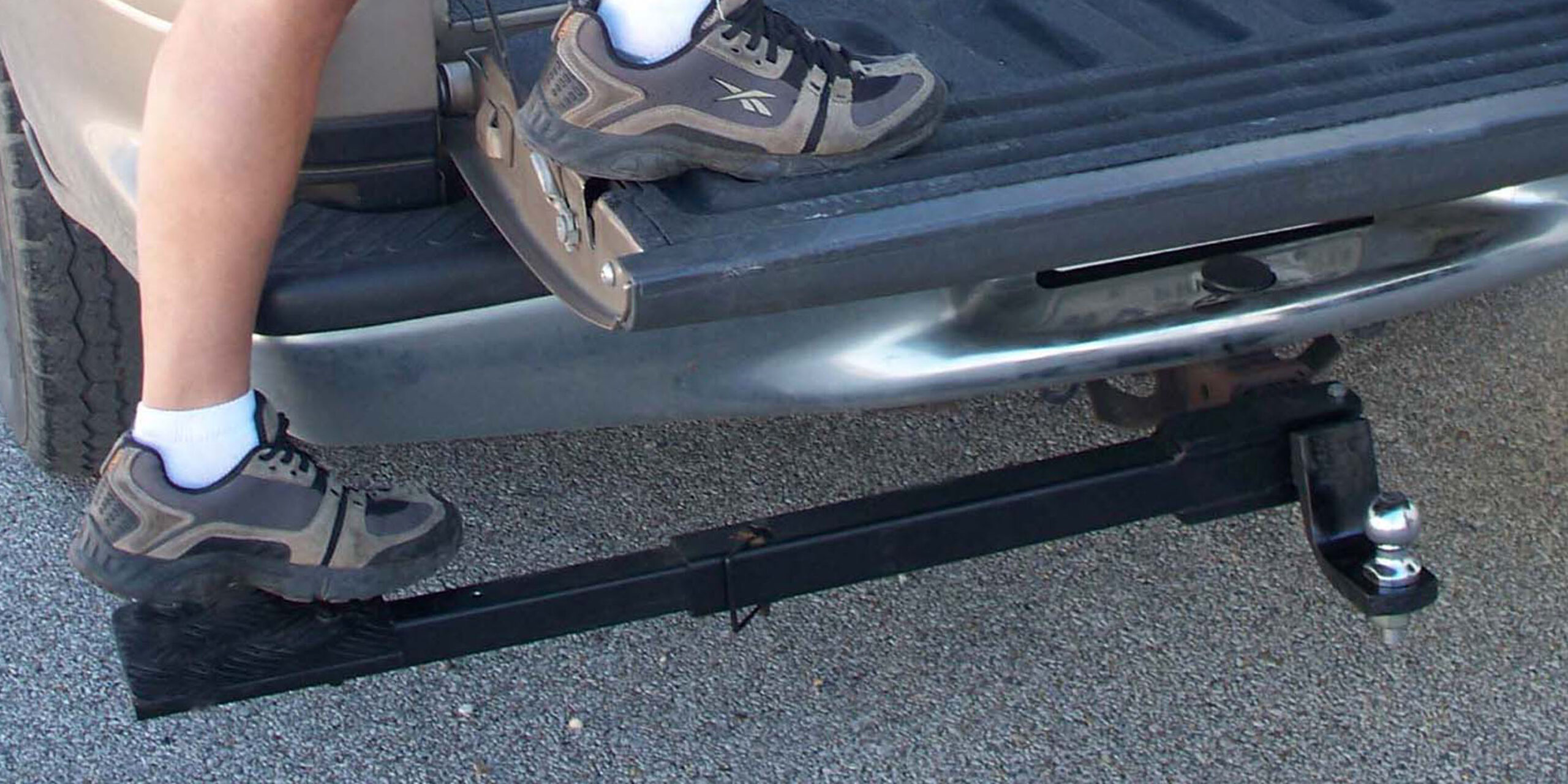The Side-Step is constructed of aircraft aluminum and has a weight capacity of 300 lbs. It features a 3” x 6” step plate with gripping ridges to provide sure footing. The Side-Step telescopes from 44” in to only 34” when not in use—with the simple pull of a quick-clip pin, it can be re-extended and ready to go!